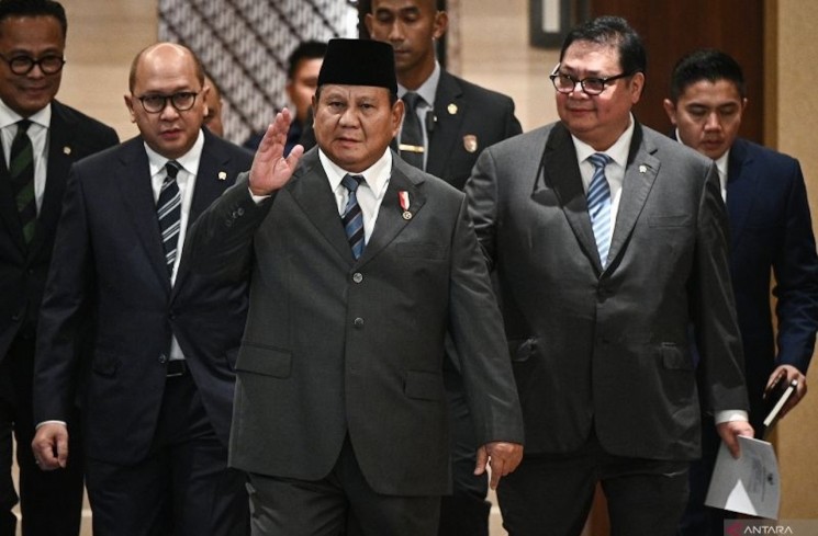Presiden Prabowo Subianto (tengah) didampingi Menko Perekonomian Airlangga Hartarto (kedua kanan), Menteri Investasi dan Hilirisasi/Kepala BKPM sekaligus CEO Badan Pengelola Investasi Daya Anagata Nusantara (Danantara) Rosan P. Roeslani (kedua kiri), dan Sekretaris Kabinet Teddy Indra Wijaya (kanan) tiba di lokasi acara Indonesia Economic Outlook 2026 di Wisma Danantara, Jakarta, Jumat (13/2/2026). Forum Indonesia Economic Outlook 2026 merupakan wadah untuk menyampaikan arah kebijakan ekonomi pemerintah sekaligus meyakinkan investor mengenai ketahanan ekonomi Indonesia. ANTARAFOTO/Fauzan/foc.