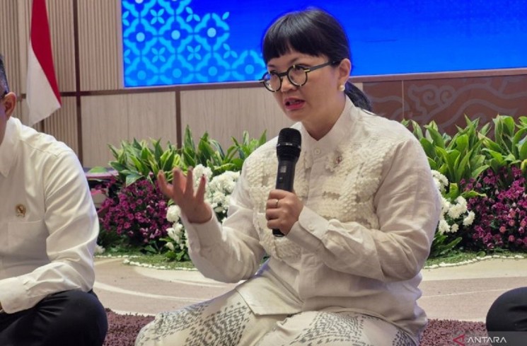 Wakil Menteri Pendidikan Tinggi, Sains, dan Teknologi (Wamendiktisaintek) Stella Christie dalam kegiatan halal bihalal bersama media di Jakarta, Senin (6/4/2026). ANTARA/Sean Filo Muhamad