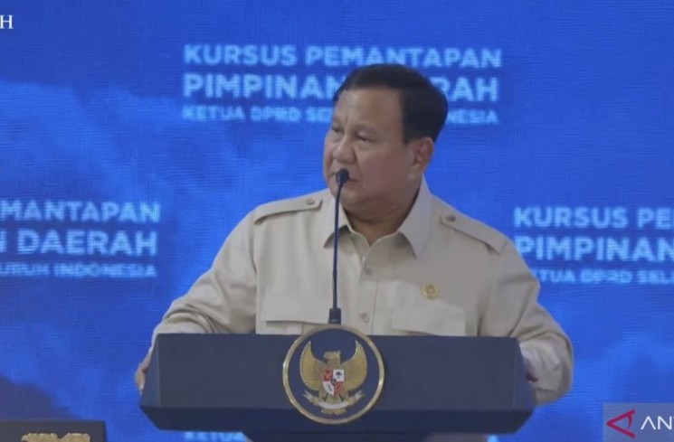 Tangkapan layar - Presiden Prabowo Subianto ketika memberikan arahan dalam Kursus Pemantapan Pimpinan Daerah Ketua DPRD Seluruh Indonesia berlangsung secara tertutup di Magelang, Jawa Tengah, Sabtu (18/4/2026). ANTARA/Prisca Triferna
